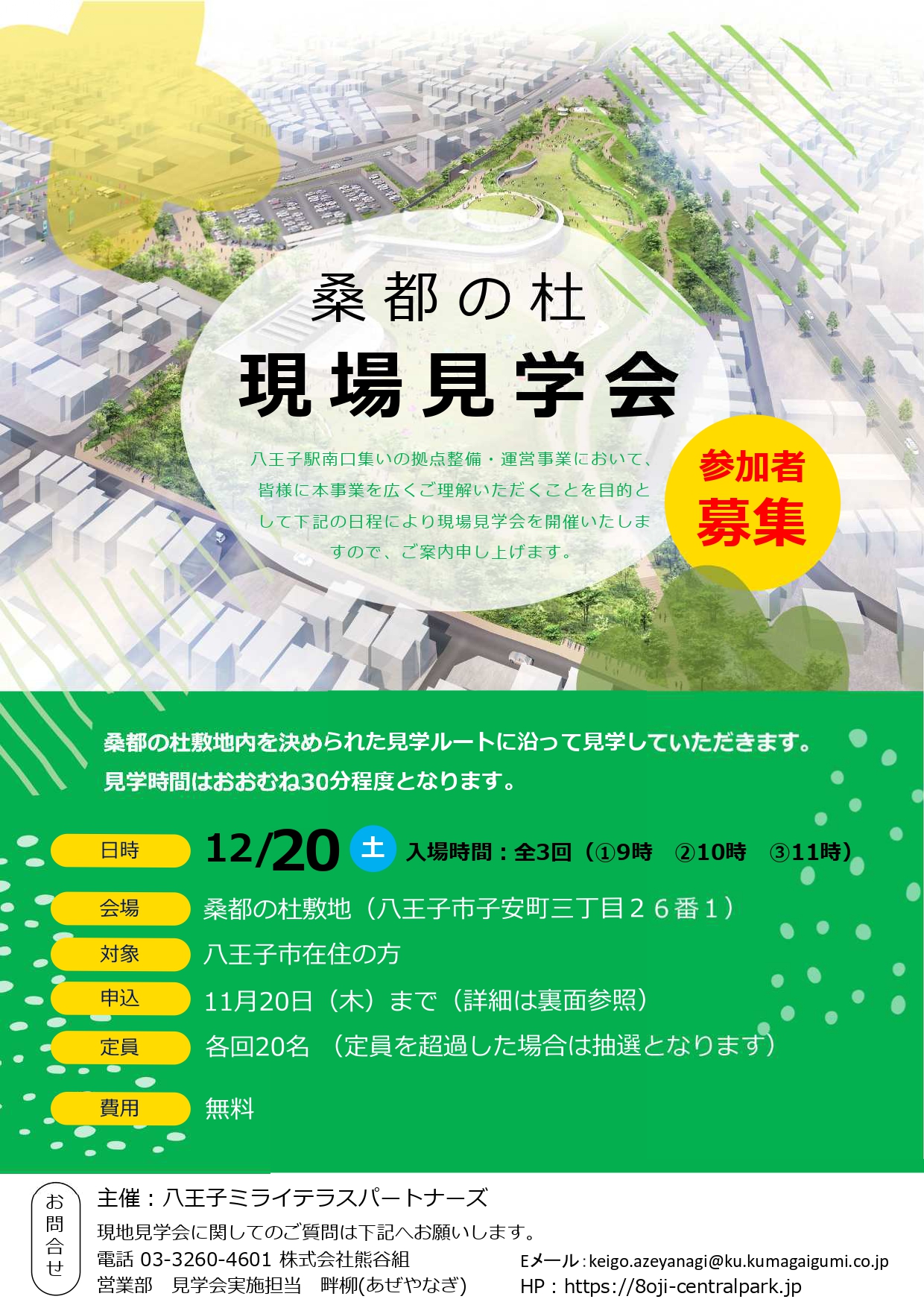 八王子駅南口で整備が進む「桑都の杜(そうとのもり)」の現場を、一般の方にもご覧いただける見学会を開催します。