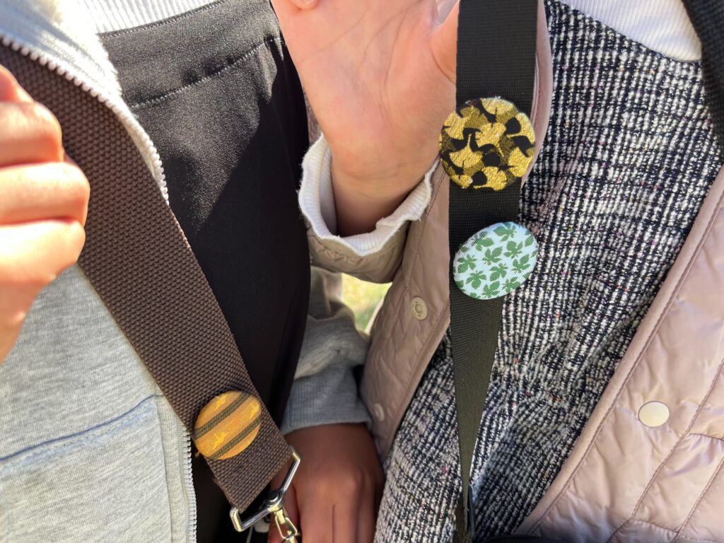 いちょう祭りならではの、いちょう柄の織物も用意し、みなさんはそれぞれお気に入りの生地やデザインを選ばれていました。完成を楽しみにしながら制作に取り組まれており、笑顔あふれる様子が多く見られました。